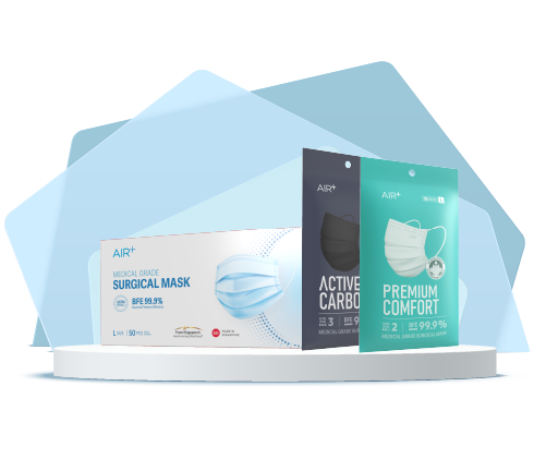 We believe that life starts with breathing healthy air every day. That’s why we are focused on leveraging scientific research and innovative engineering to develop our unique range of protective masks that that enables us to breathe safely and empower healthy lives. Today AIR+ is home to a range of award-winning masks, including our world’s first CE-certified mask with attachable micro fan for exhalation relief, reusable mask and a well-loved range of premium surgical masks for your protective needs.