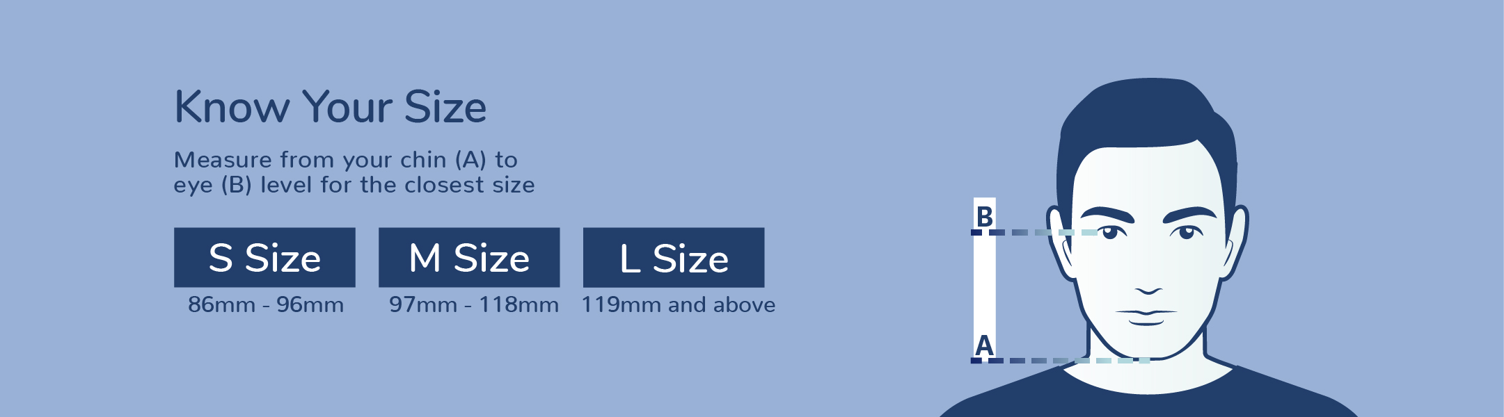 | Size Guide (Measure from your chin to eye level for the closest size) |